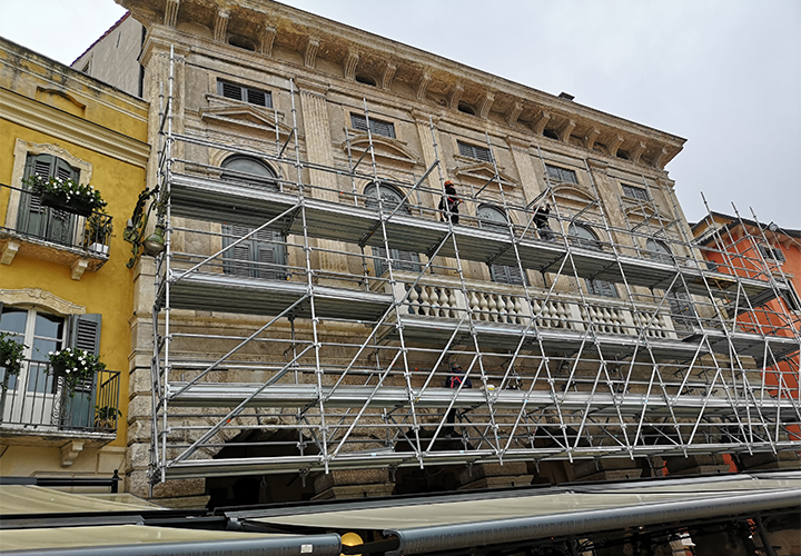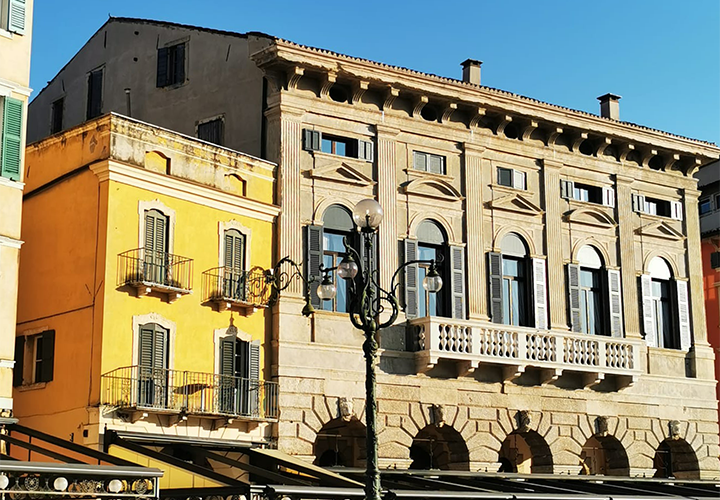 Il palazzo del XVI secolo che si affaccia su Piazza Bra accanto all'Arena di Verona ritrova il suo splendore.
