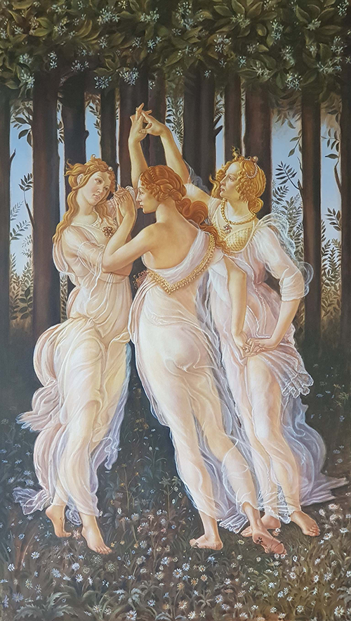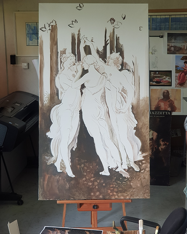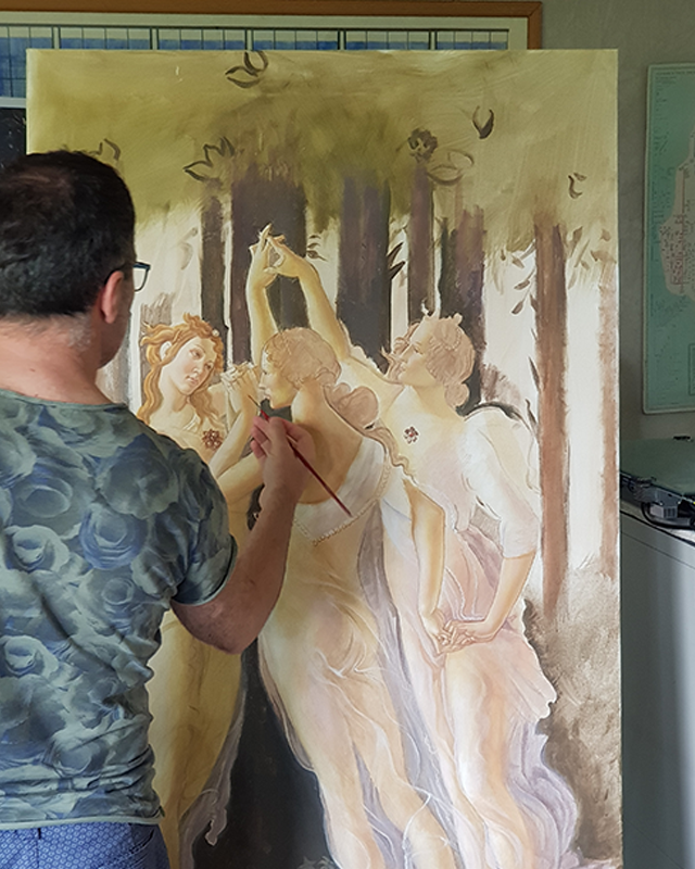La riproduzione del quadro “La Primavera” di Botticelli è stata realizzata con la tecnica della pittura ad olio su tela con una dimensione di cm 80×120 h.